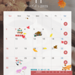 11/1(土) 11/3(月)文化の日 11/8(土) 11/15(土) 11/22(土) 11/24(月)勤労感謝の日 11/29(土)