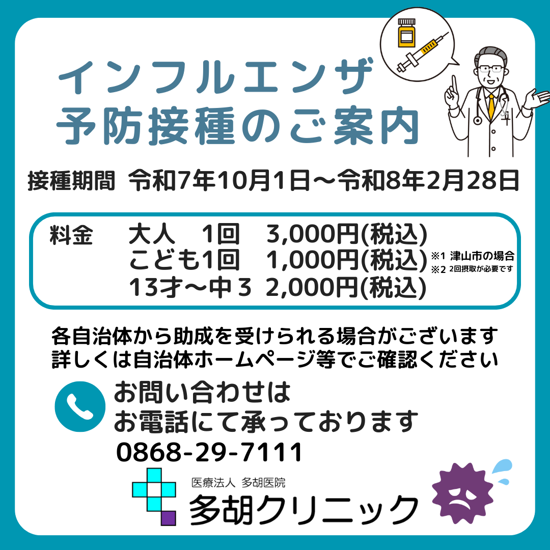 2025年10月1日よりインフルエンザの予防接種を開始しました。