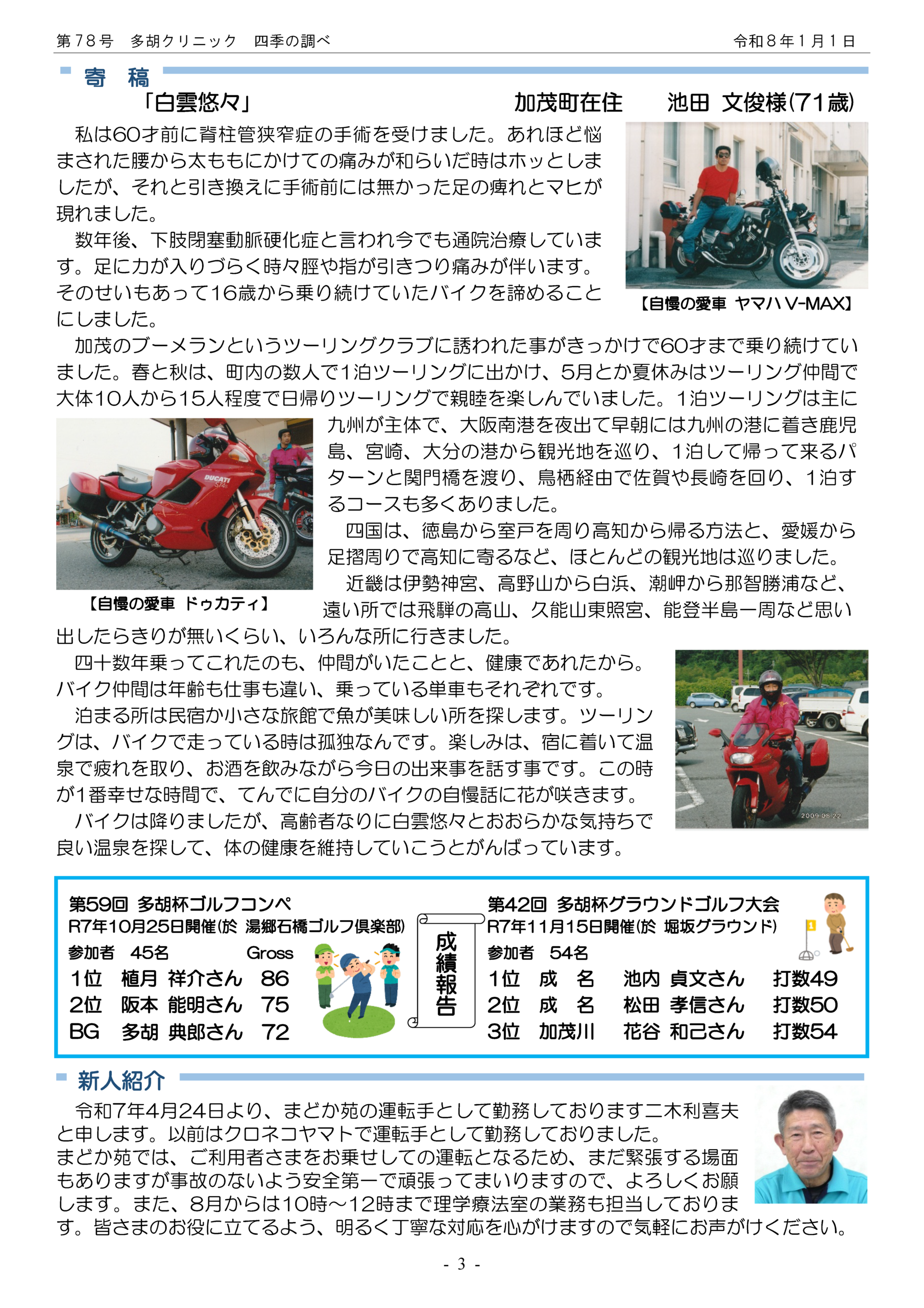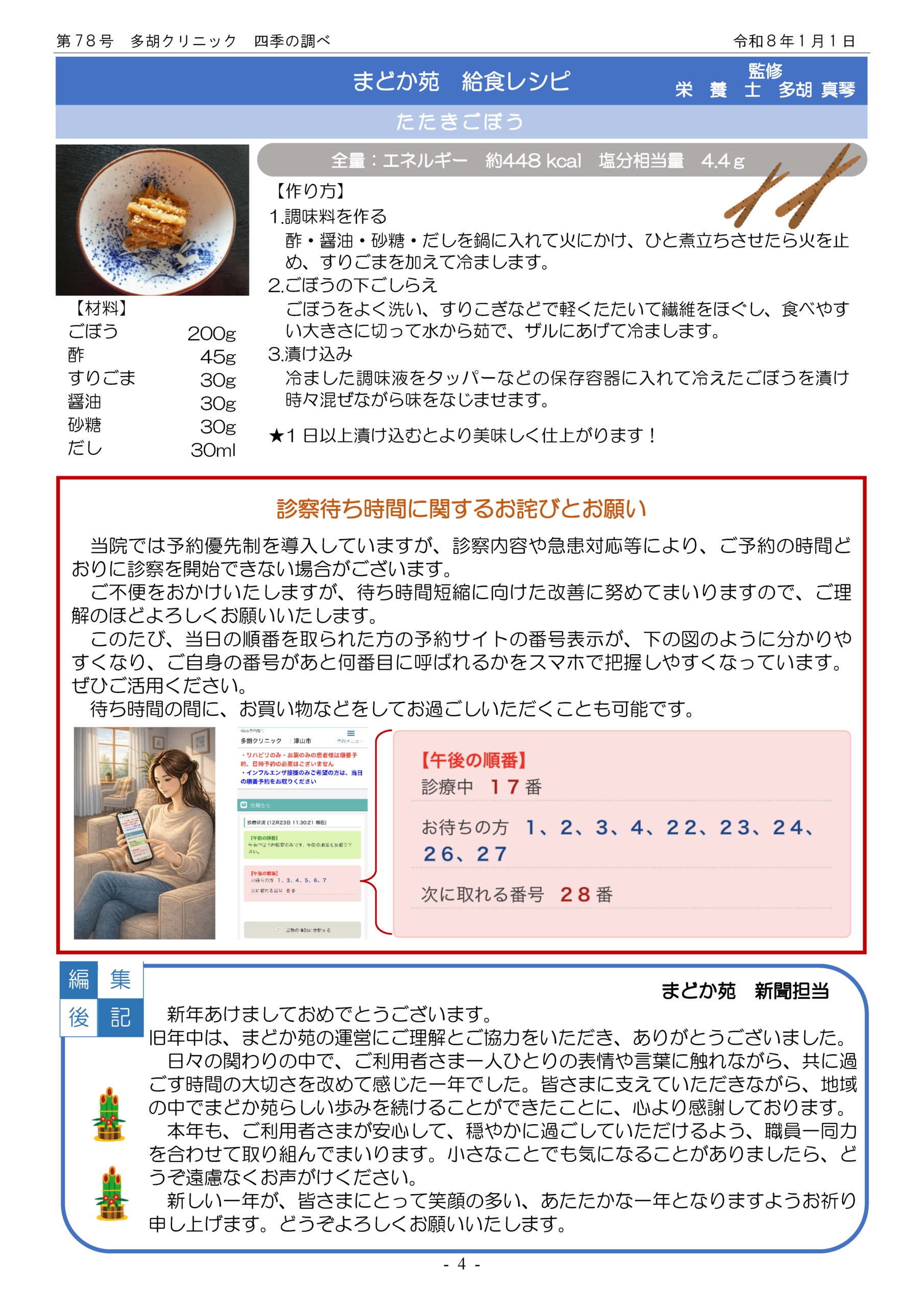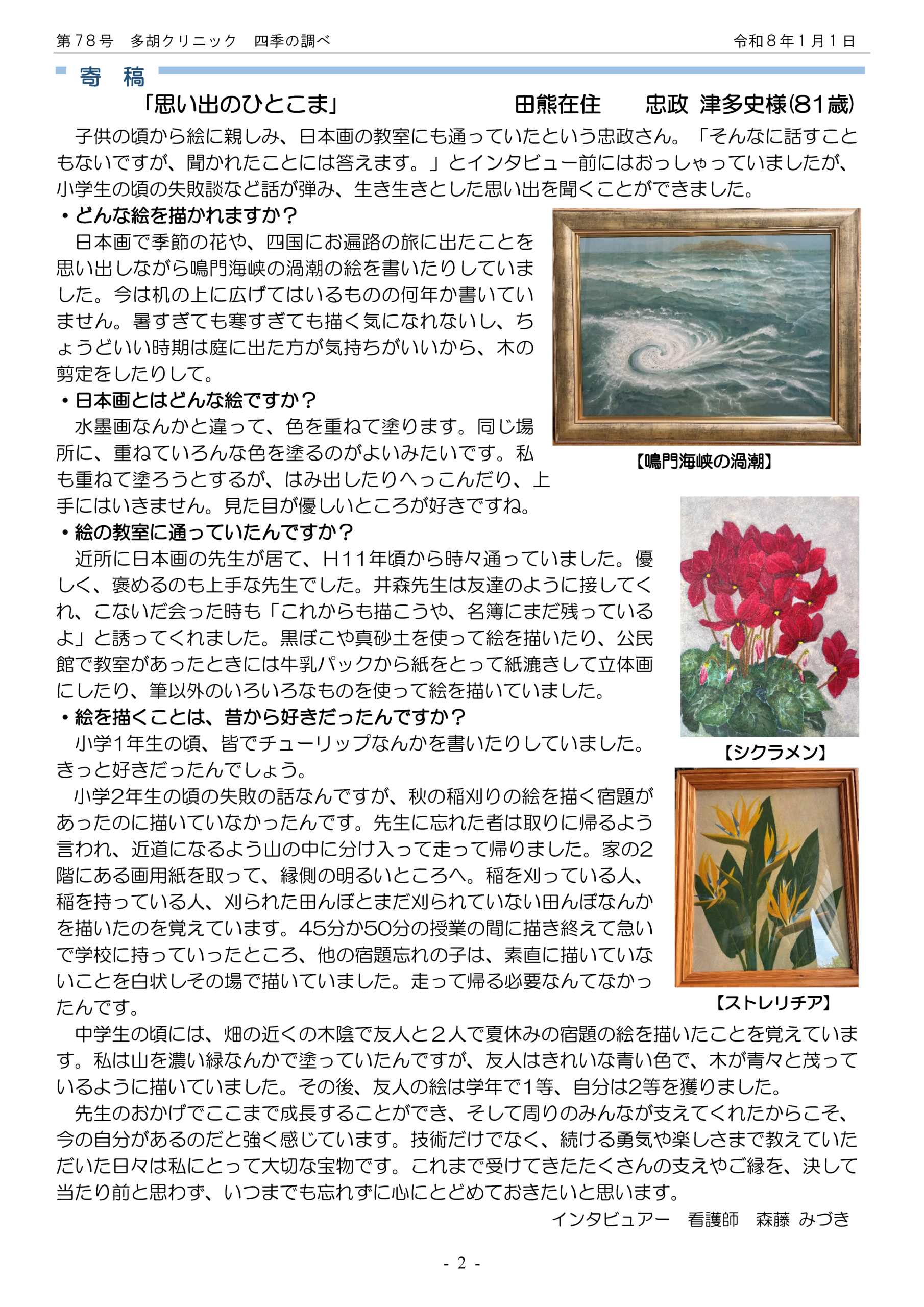 多胡クリニック広報誌「四季の調べ」**第78号(令和8年1月1日発行)**を掲載しました。
